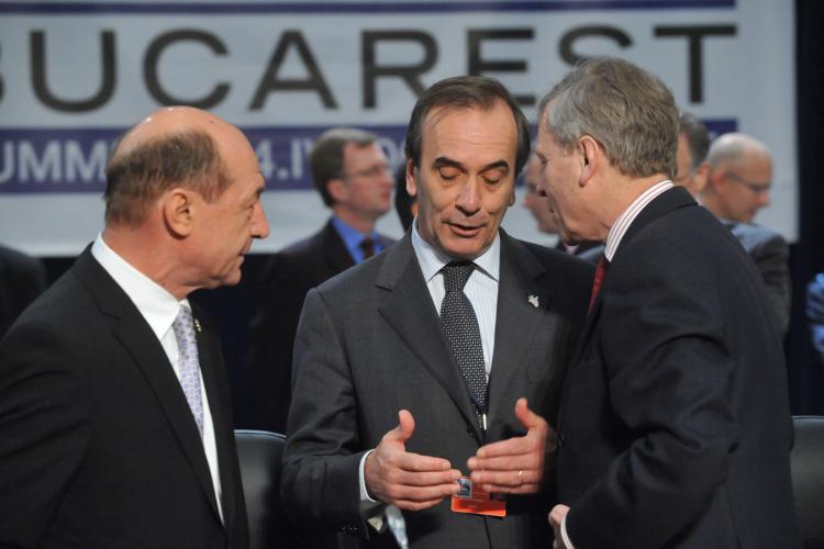 From left to right: Traian Basescu, President of Romania; José Antonio Alonso Suárez, Minister of Defence of Spain and NATO Secretary General Jaap de Hoop Scheffer (Photo: NATO)