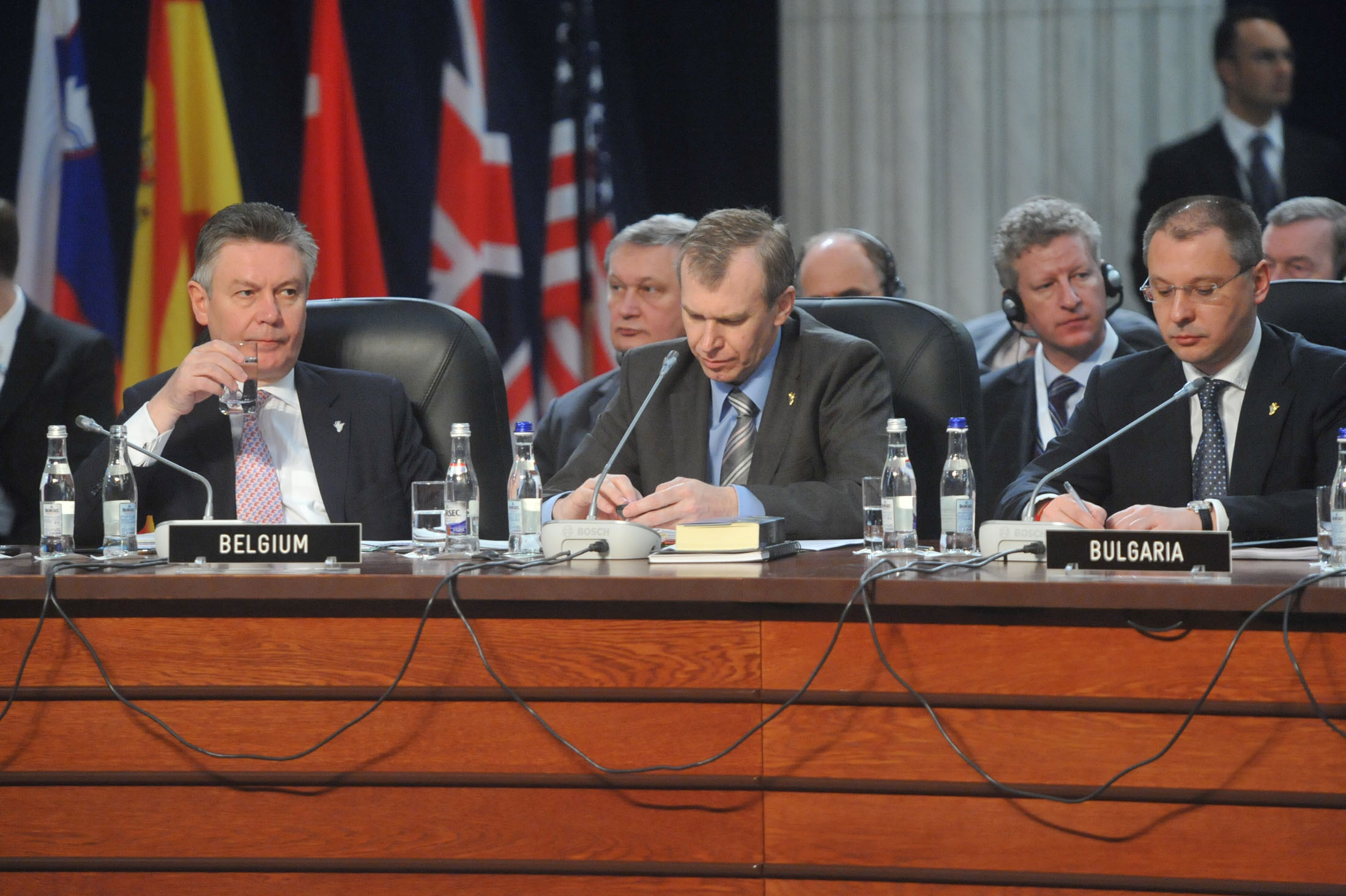 From left to right: Karel De Gucht, Minister of Foreign Affairs of Belgium; Yves Leterme, Prime Minister of Belgium and Sergei Stanishev, Prime Minister of Bulgaria (Photo: NATO)