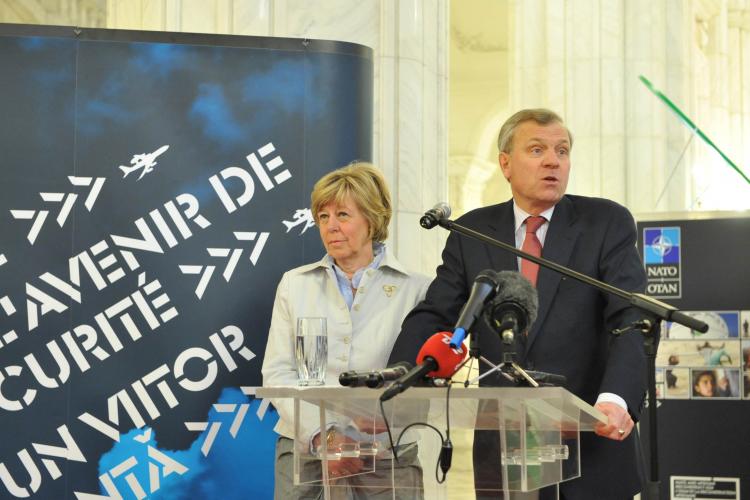 Remarks by NATO Secretary General Jaap de Hoop Scheffer. Mrs De Hoop Scheffer (left) (Photo: NATO).