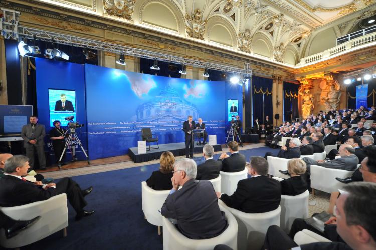 Keynote speech by NATO Secretary General Jaap de Hoop Scheffer at the Bucharest Conference (Photo: NATO)