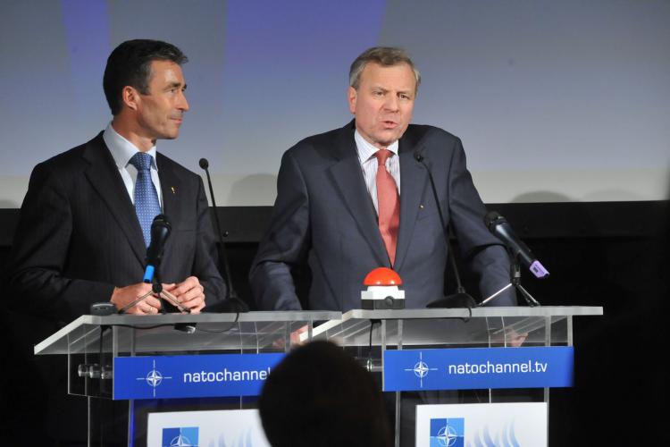 The Prime Minister of Denmark, Anders Fogh Rasmussen and NATO Secretary General Jaap de Hoop Scheffer launch natochannel.tv (Photo: NATO)