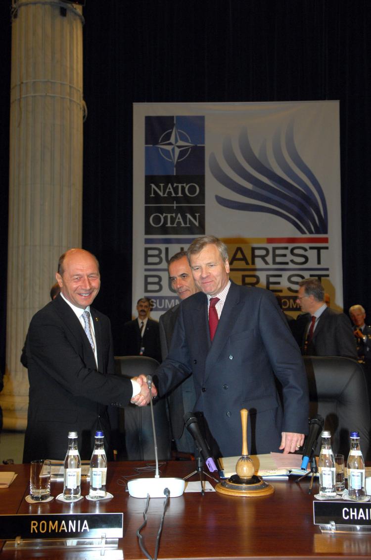 From left to right: Traian Basescu, President of Romania and NATO Secretary General, Jaap de Hoop Scheffer (Photo: NATO)