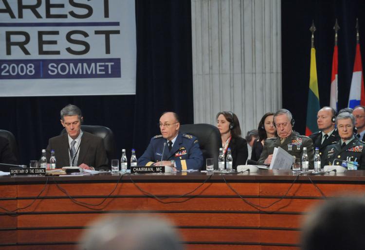 From left to right: Ted Whiteside, NATO Secretary of the Council; General Ray Henault, Chairman of the NATO Military Committee; General James Mattis, Supreme Allied Commander Transformation; General John Craddock, Supreme Allied Commander Europe (Photo: NATO)