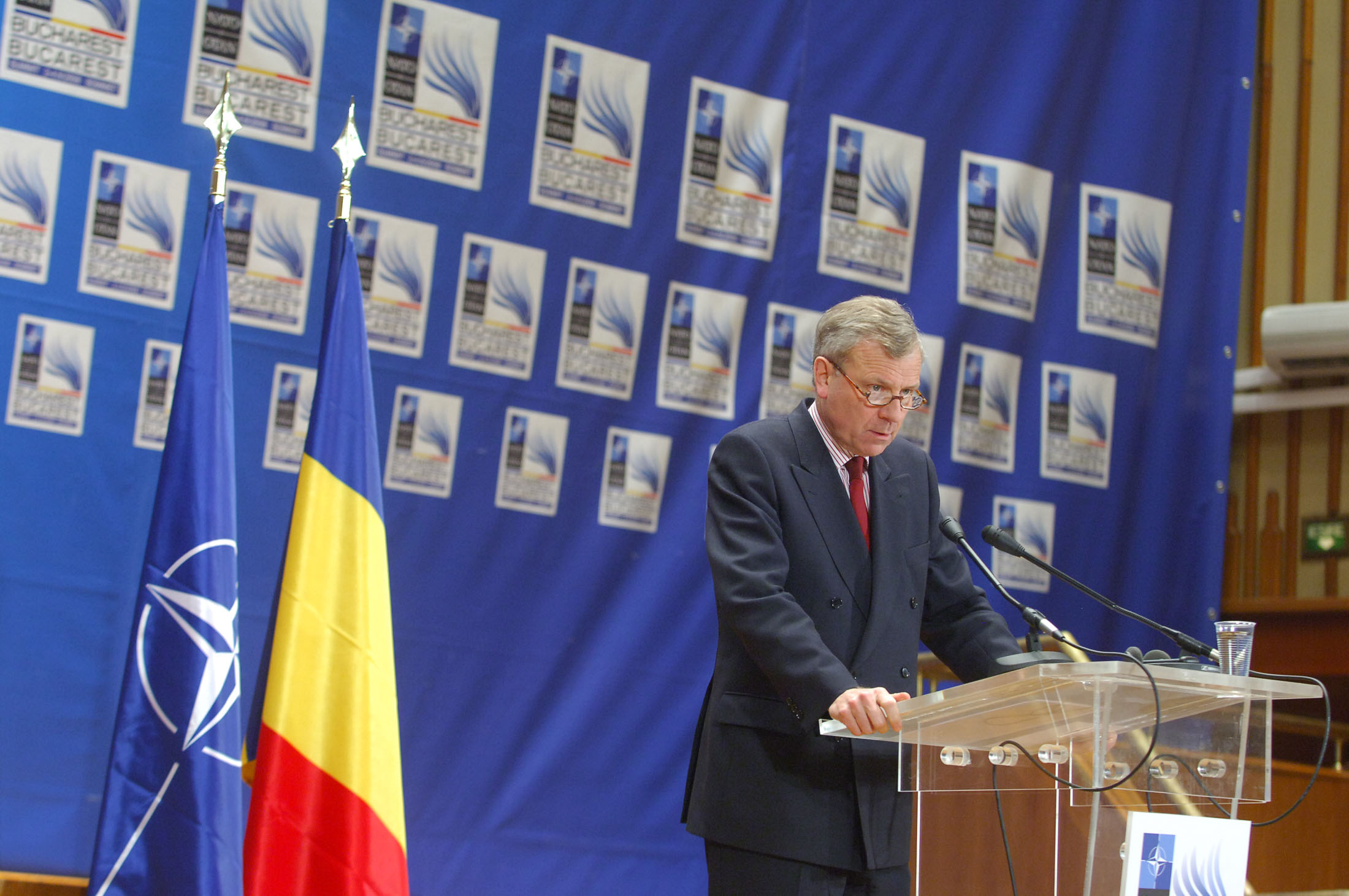 Press conference by NATO Secretary General Jaap de Hoop Scheffer after the North Atlantic Council Summit meeting (Photo: NATO)