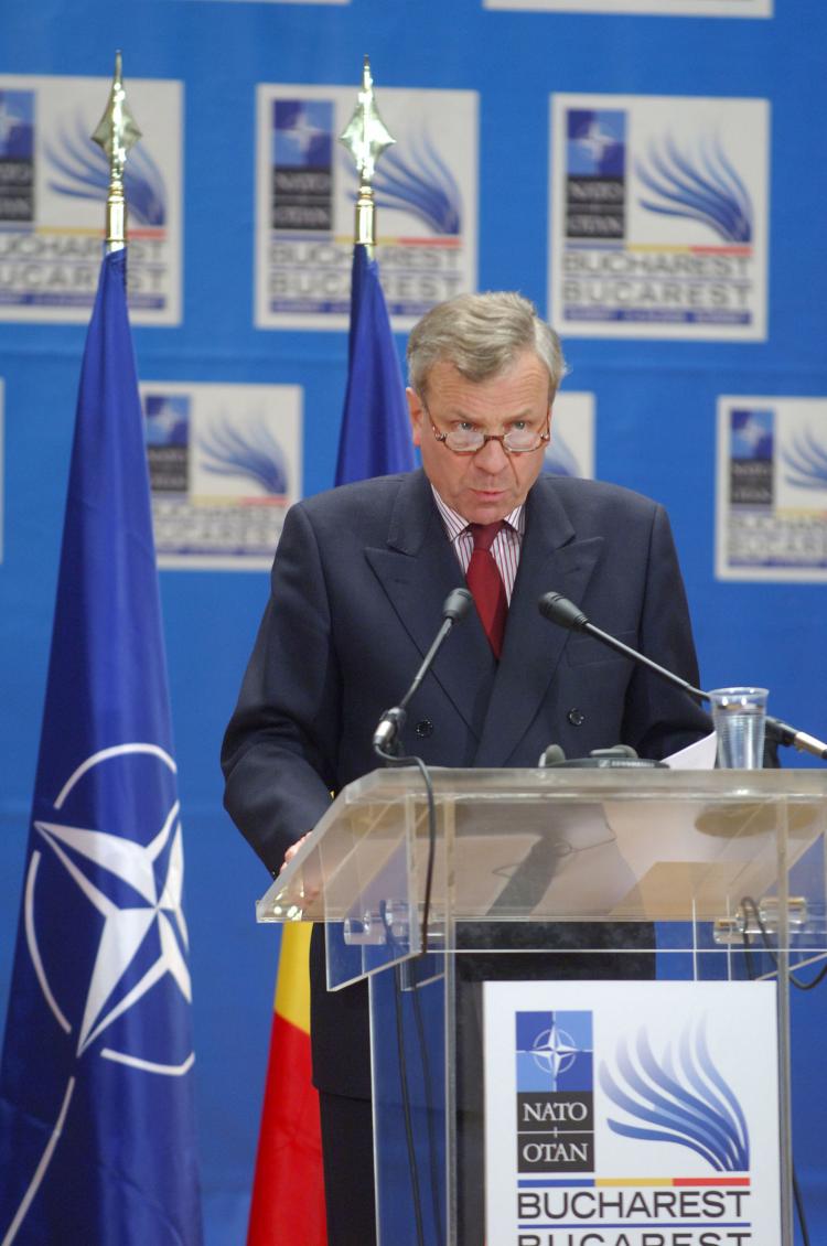 Press conference by NATO Secretary General Jaap de Hoop Scheffer after the North Atlantic Council Summit meeting (Photo: NATO)