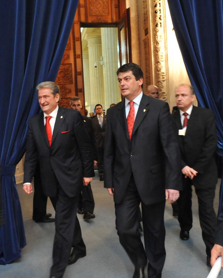 From left to right: Sali Berisha, Prime Minister of the Republic of Albania and Bamir Topi, President of the Republic of Albania (Photo: NATO)