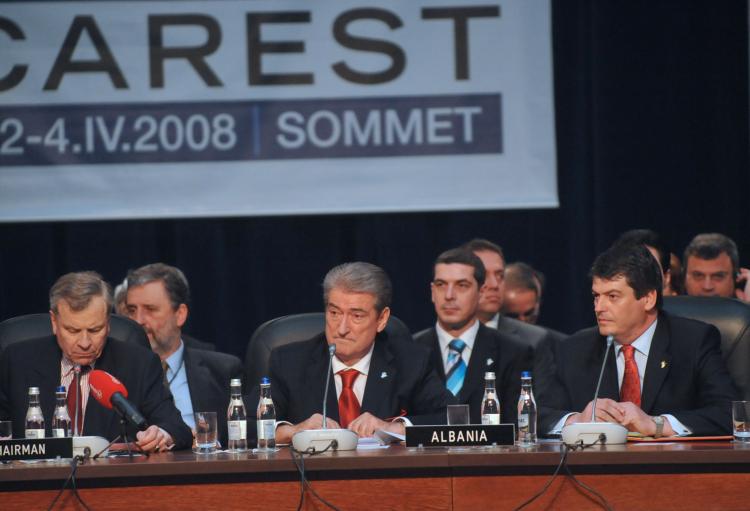 From left to right: NATO Secretary General, Jaap de Hoop Scheffer, Sali Berisha, Prime Minister of the Republic of Albania and Bamir Topi, President of the Republic of Albania (Photo: NATO)