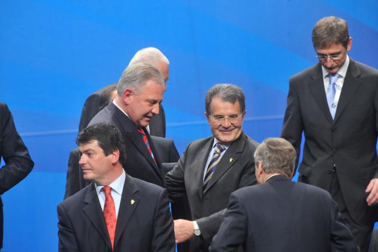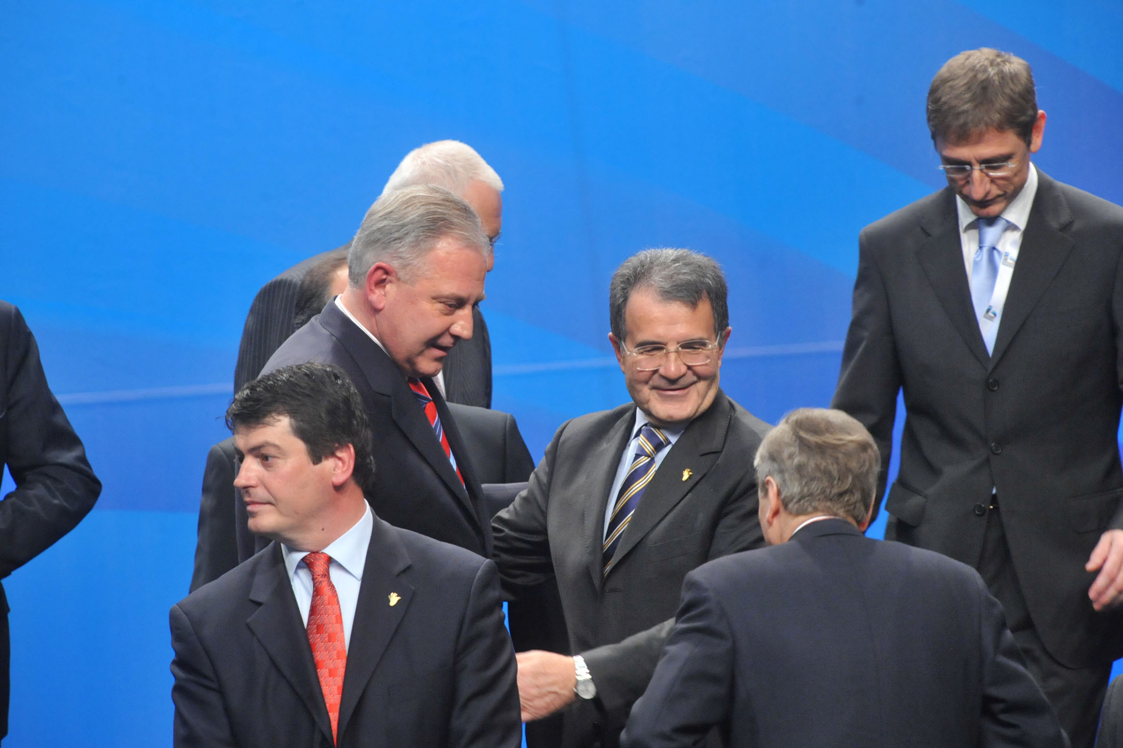 From left to right: Bamir Topi, President of Albania, Mirek Topolánek, Ivo Sanader, Prime Minister of Croatia, Romano Prodi, Prime Minister of Italy, NATO Secretary General, Jaap de Hoop Scheffer and Ferenc Gyurcsány, Prime Minister of Hungary (Photo: NATO)