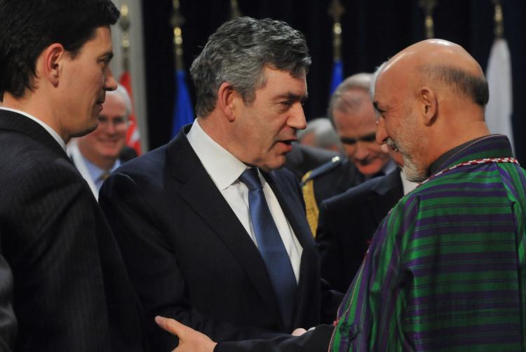 From left to right: David Miliband, Secretary of State for Foreign Affairs; Gordon Brown, Prime Minister of the United Kingdom and President Hamid Karzai of Afghanistan (Photo: NATO)