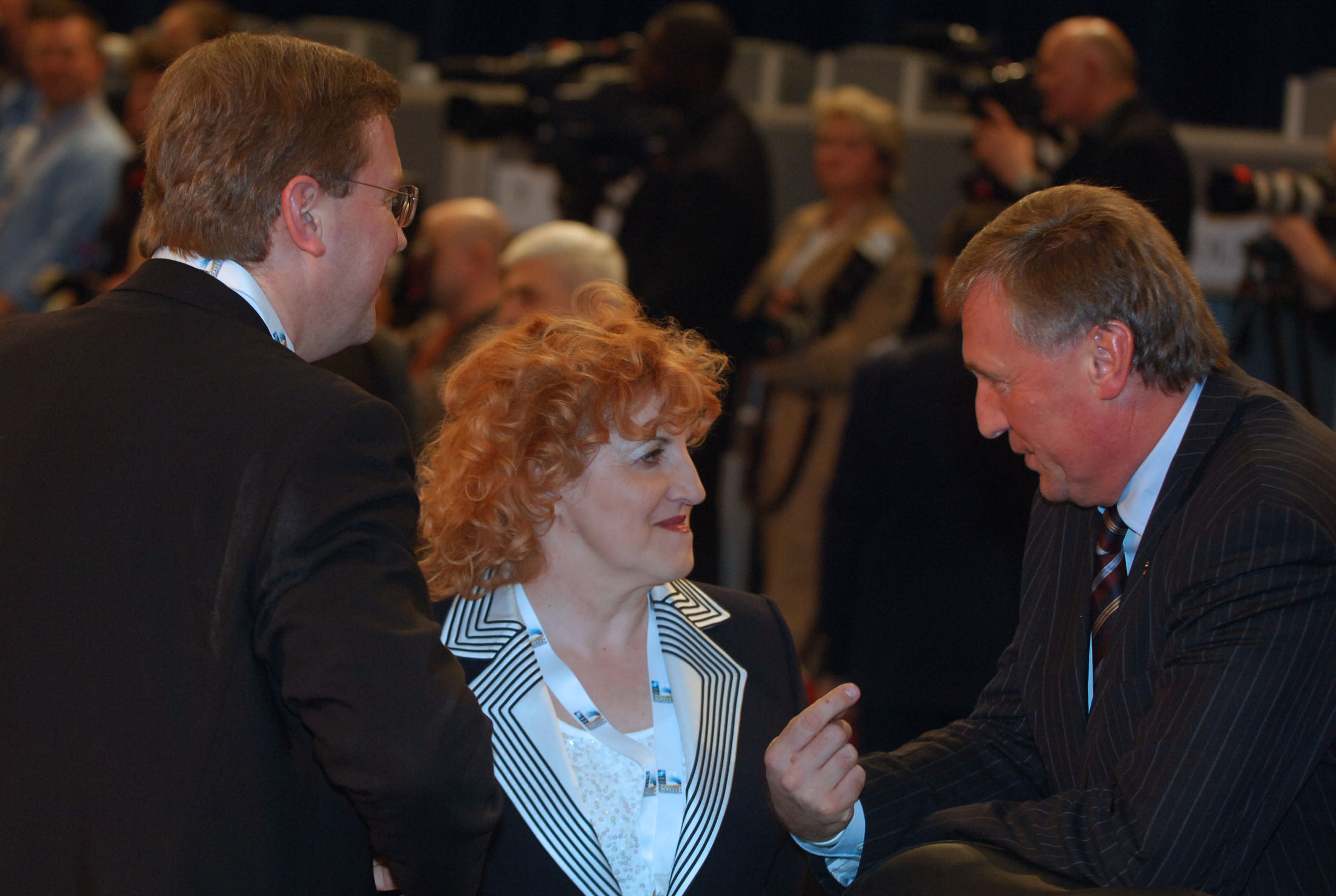 From left to right: tefan Füle, NATO Permanent Representative for the Czech Republic; Vlasta Parkanová, Minister of Defence of the Czech Republic and Mirek Topolánek, Prime Minister of the Czech Republic (Photo: NATO)