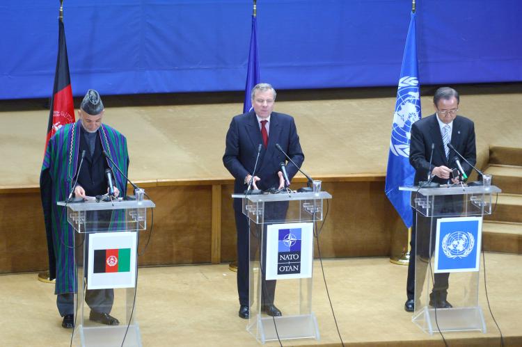 » PHOTO: NATO - Joint press conference by the NATO Secretary General , the President of Afghanistan and the United Nations Secretary General