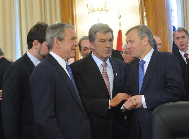 From left to right: US President George Bush, Victor Yuschenko, President of Ukraine and NATO Secretary General Jaap de Hoop Scheffer(Photo: NATO)