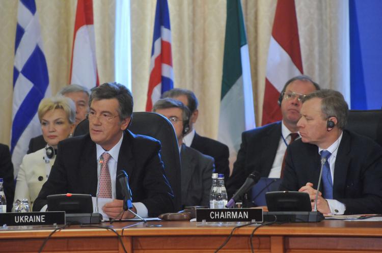 Opening remarks by Victor Yuschenko, President of Ukraine; NATO Secretary General Jaap de Hoop Scheffer (right)(Photo: NATO)