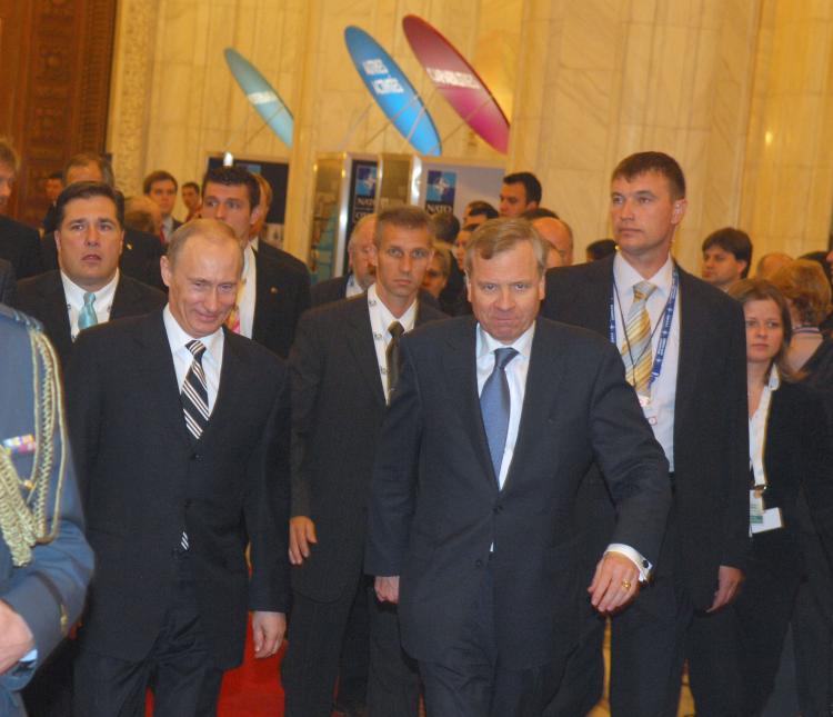 Vladimir Putin, President of Russia and NATO Secretary General Jaap de Hoop Scheffer enter the conference room(Photo: NATO)