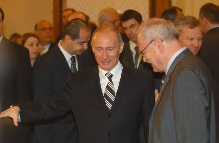 From left to right: Vladimir Putin, President of Russia and Ivan Gašparovic, President of the Slovak Republic(Photo: NATO)