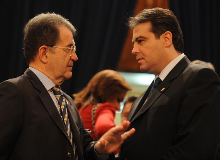 Le premier-ministre de l’Italie , Romano Prodi et Adrian Cioroianu, Ministre des affaires étrangères de la Roumanie (Photo: Rompres)