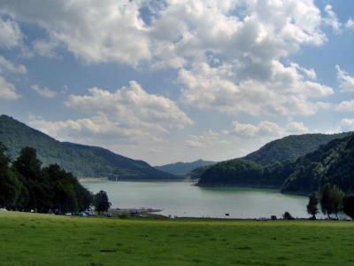 -Lacuri: exista in jur de 3500 de lacuri in Romania. Cele mai importante sunt lacurile provenite din fostele lagune de pe malul Marii Negre – Lacul Razim (425 km patrati) si Lacul Sinoe (171 km patrati). In Muntii Carpati exista lacuri glaciare, cel mai mare dintre ele este Lacul Bucura, cu o suprafata de 10,8 ha. De asemenea, exista lacuri facute de om, importante pentru puterea energetica, cele mai importante fiind cele de pe Dunare la Portile de Fier II (40.000 ha) si Portile de Fier I (10.000 ha, dar cu un volum de apa de trei ori mai mare decat la Portile de Fier II). Extrem de important este si cel de la Izvoru Muntelui pe râul Bicaz (cu o suprafata de 3.100 ha).